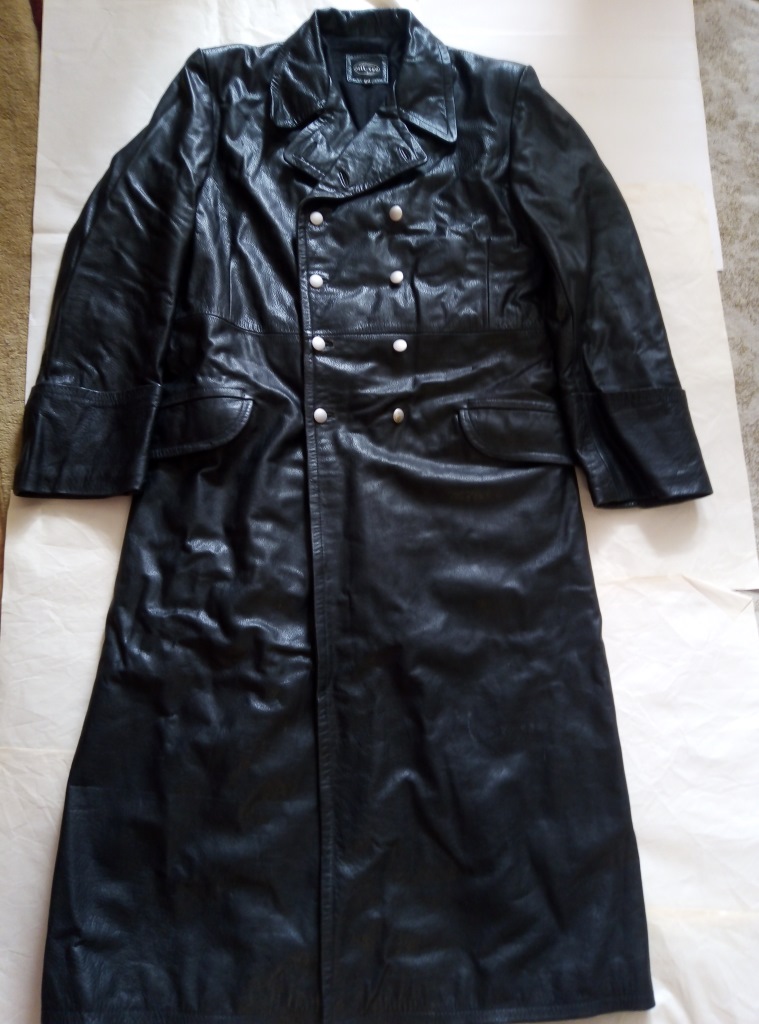 Продам отличную копию немецкого офицерского плаща, толстая кожа буйвола, размер 54, по длине подойдет до роста 185-188 см, очень длинный. Производство Штурм, не носился.