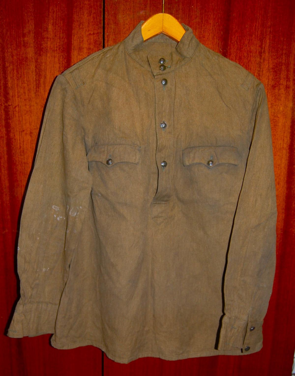 1. Гимнастерка б/у, выцвела, но крепкая. Дыр и т.д. нет, пуговицы все.