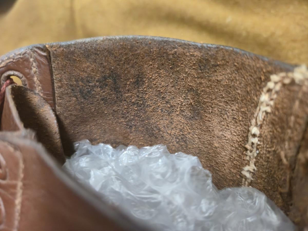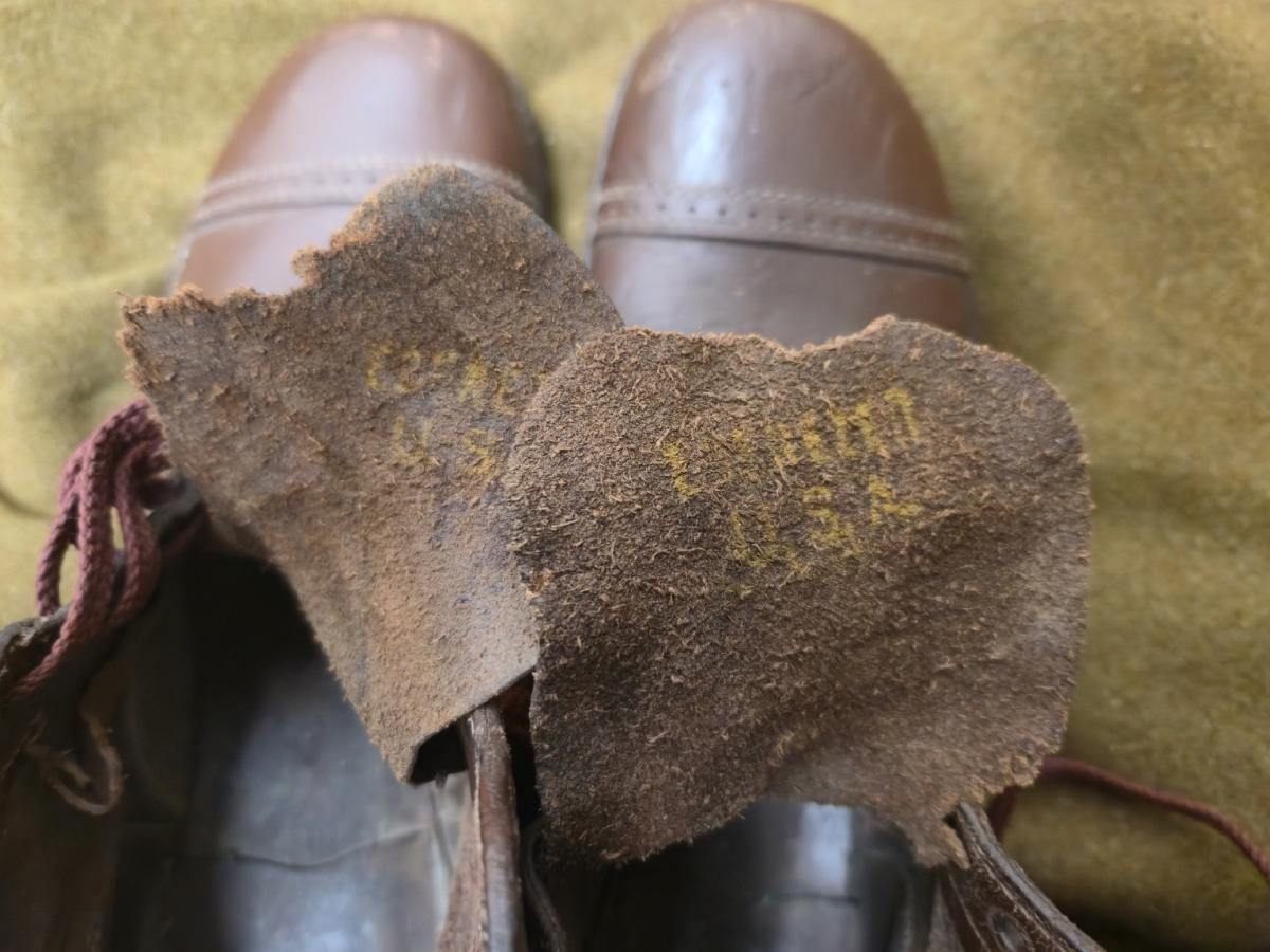 Из недостатков можно отметить один распушившийся конец шнурка на правом ботинке, небольшие коцки на носах, и чуть "покусанные" временем язычки. На левом ботинке на верхней части есть потёртости. Всё остальное в отличном состоянии для своих 80+ лет.