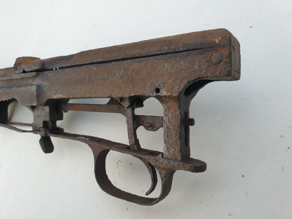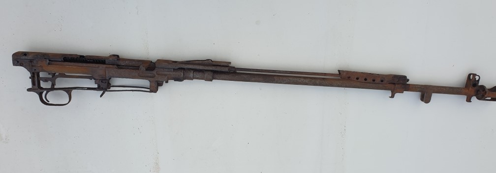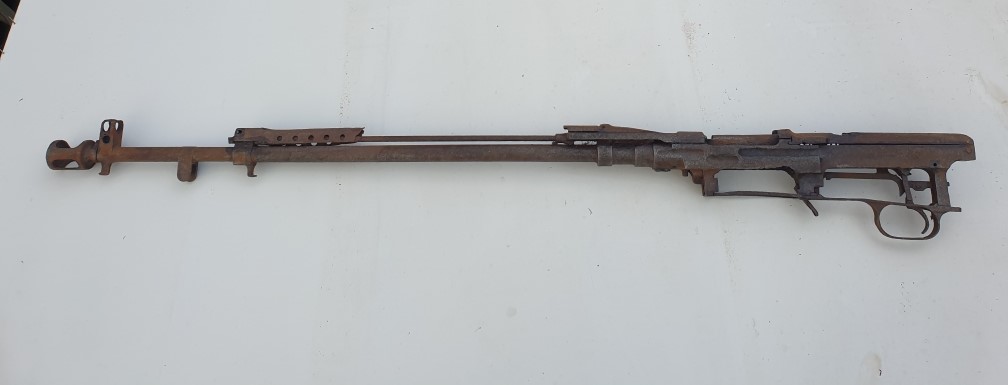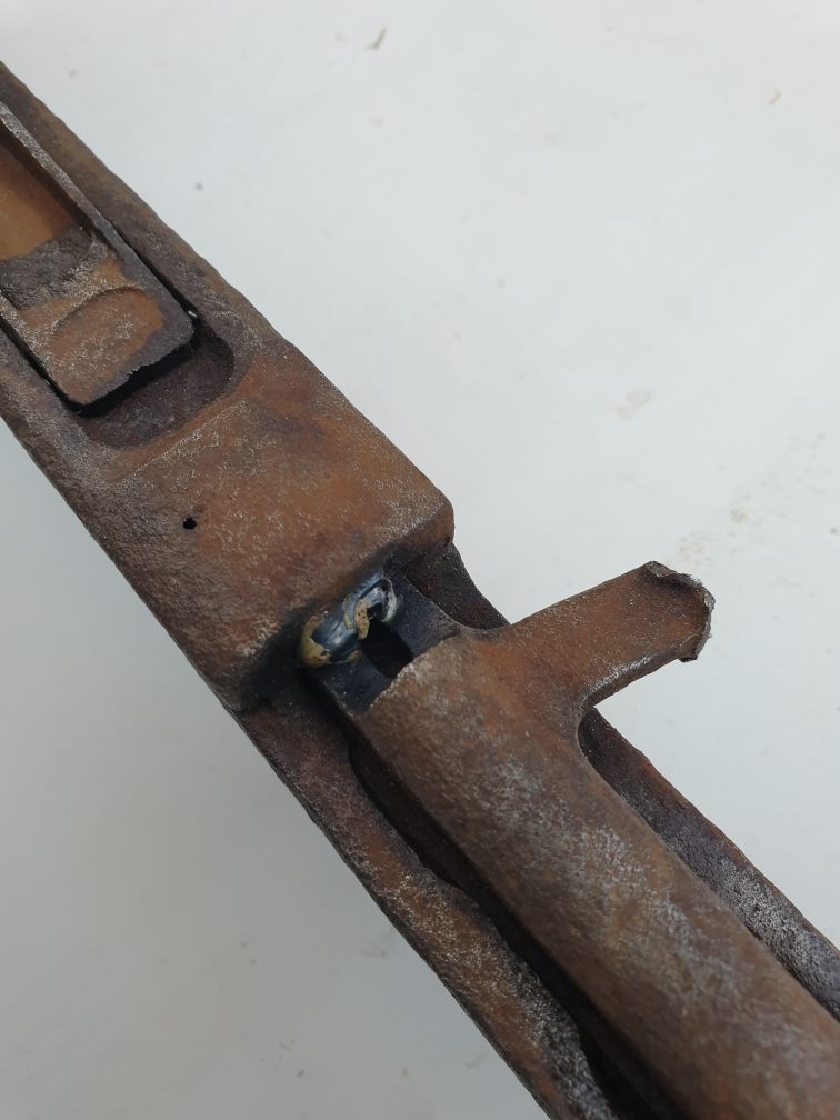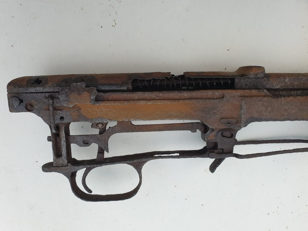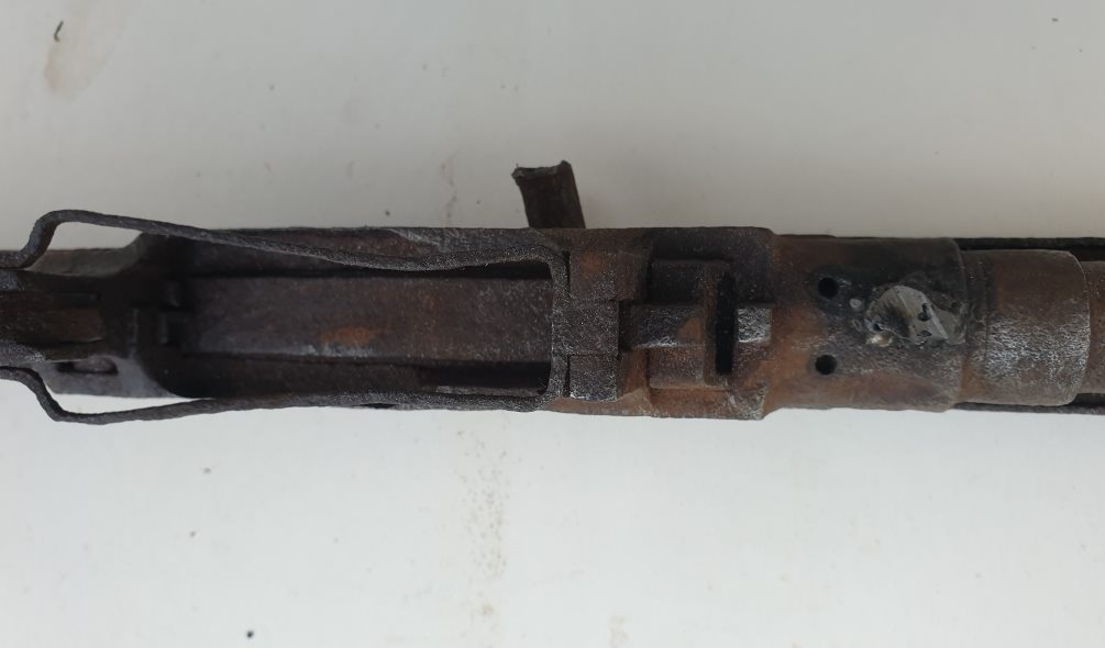 Шпилька в патроннике,затвор приварен.Досталась в таком виде,почистил щеткой.Разбирать не пытался.Курок шевелится.