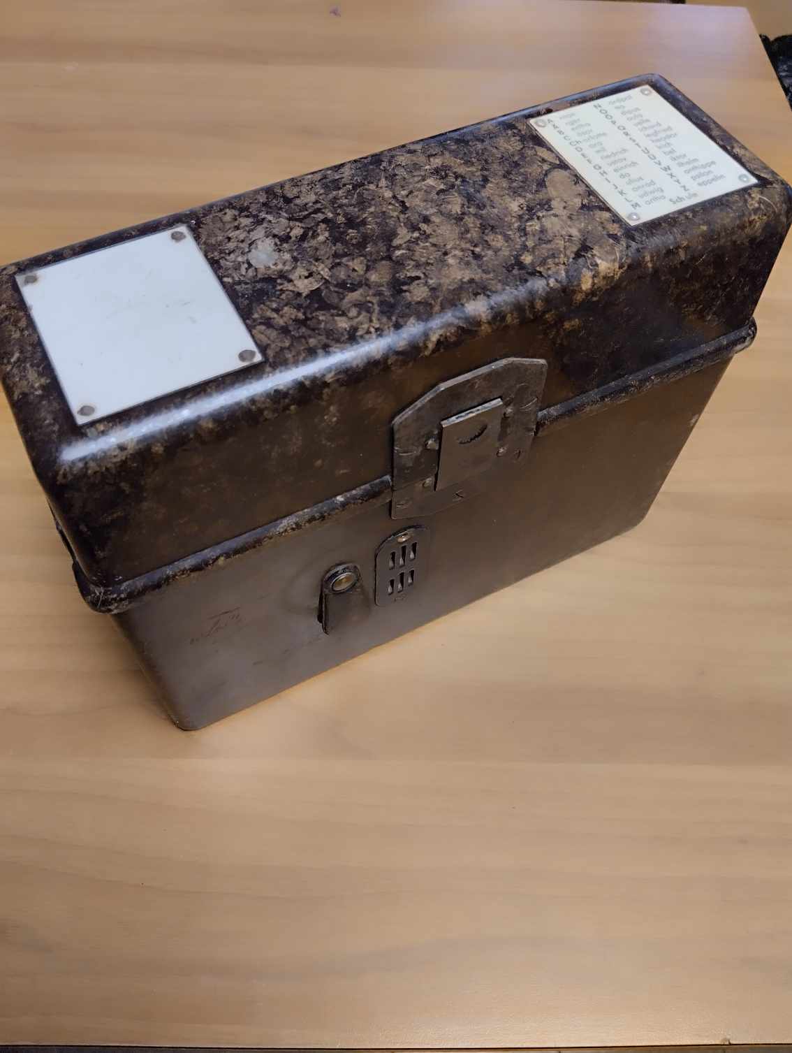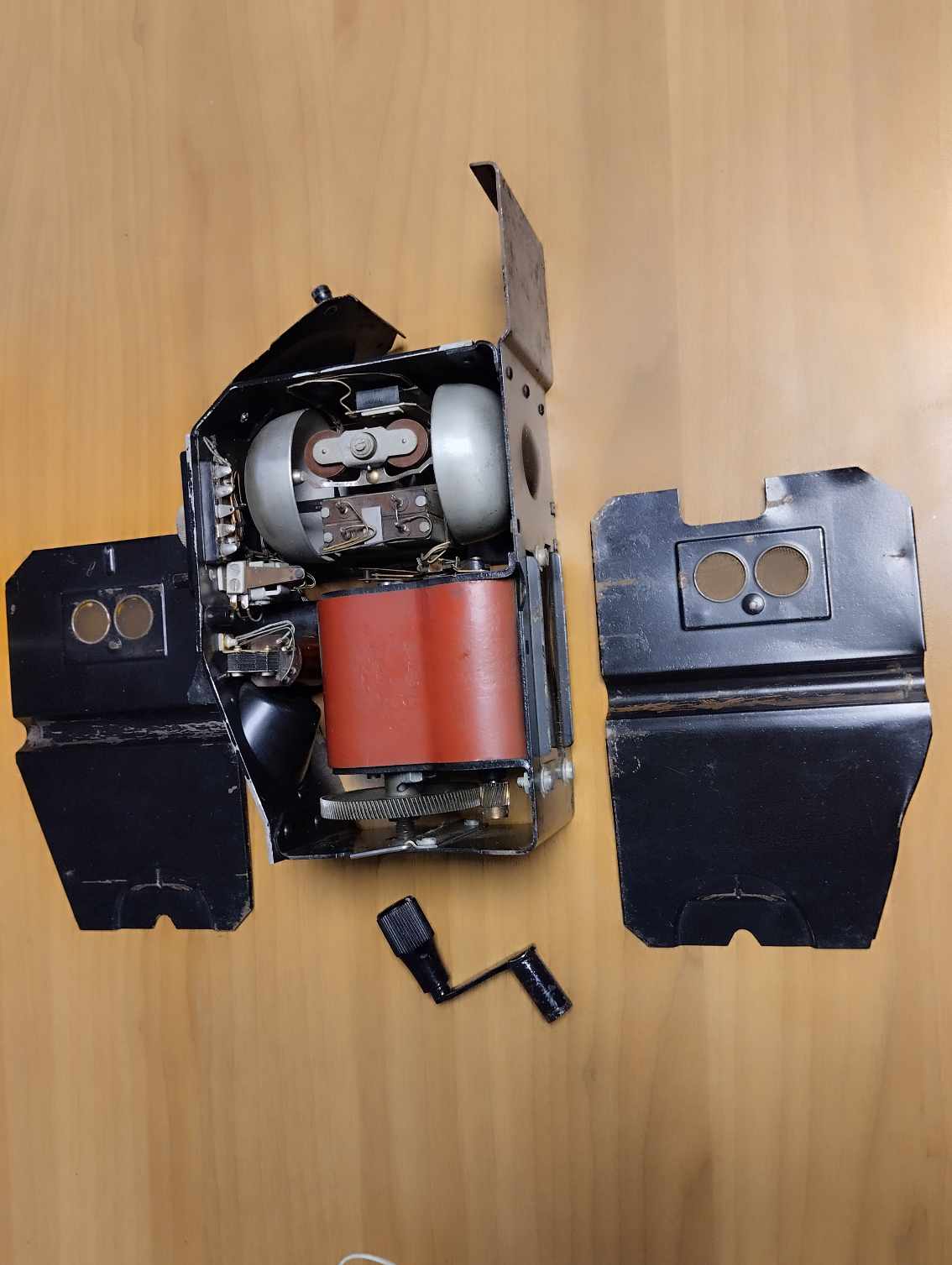 Полевой вермахтовый телефон выпуска 1940 г, без трубки. Внутренность без повреждений, динамо вращается, проверить работоспособность не могу. В бакелитовой корпусе под отверстием для ручки имеется пробитие, лечится эбакситкой, отсутствует несколько болтиков. Состояние на твердую четверку. Визуально внутри проводка целая,окисление контактов и пайки отсутствует. механизмы на месте,без вмешательств. Замок,петля,окна на корпусе работают штатно. Предмет не из копа. Стоимость 8 тр плюс дорога по РФ.
