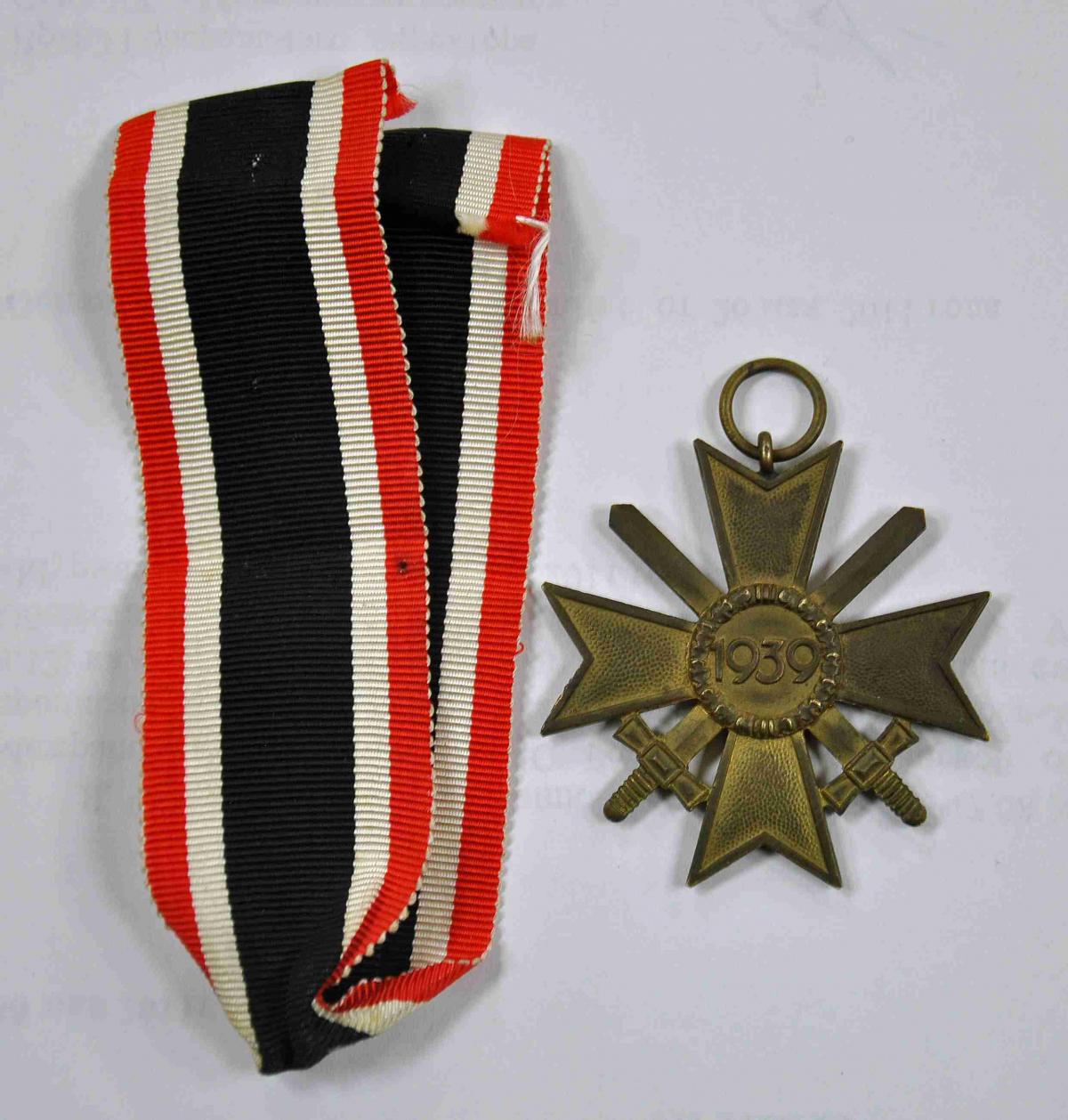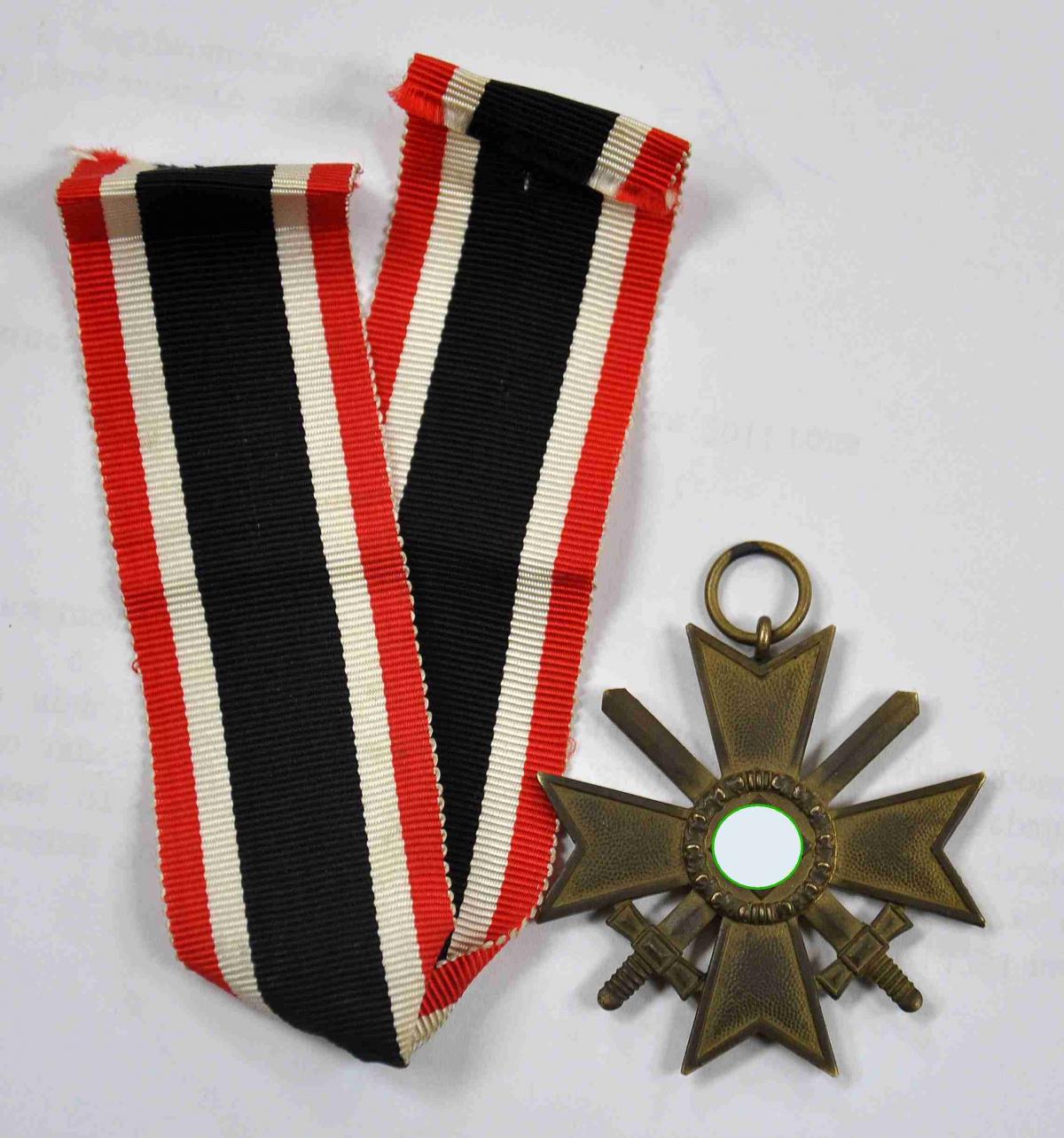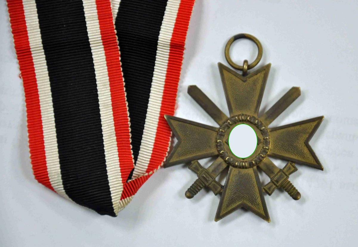 Оригинальный крест KVK (Kriegsverdienstkreuz) «Крест военных заслуг» 2 степени с мечами в хорошем состоянии с оригинальной лентой.