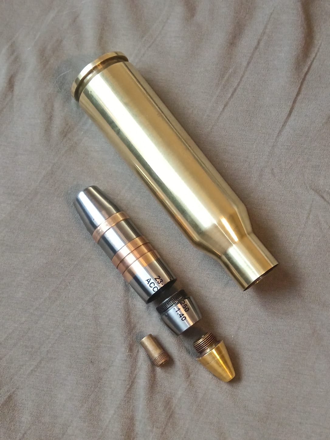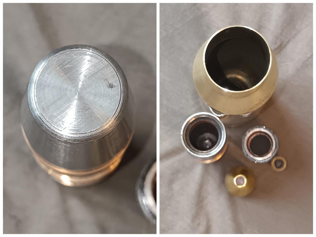 Гочкис 25х163мм, Франция, для зенитных пушек 25mm Hotchkiss 38/39, натрофеены немцами. В Германии стояли на вооружение под обозначение 2,5cm Flak (f). Полный деактив, капсюль залит маслом. Резьбы отличные. Гильза латунь, не сверленная, голова входит очень плотно. Фото подробные.