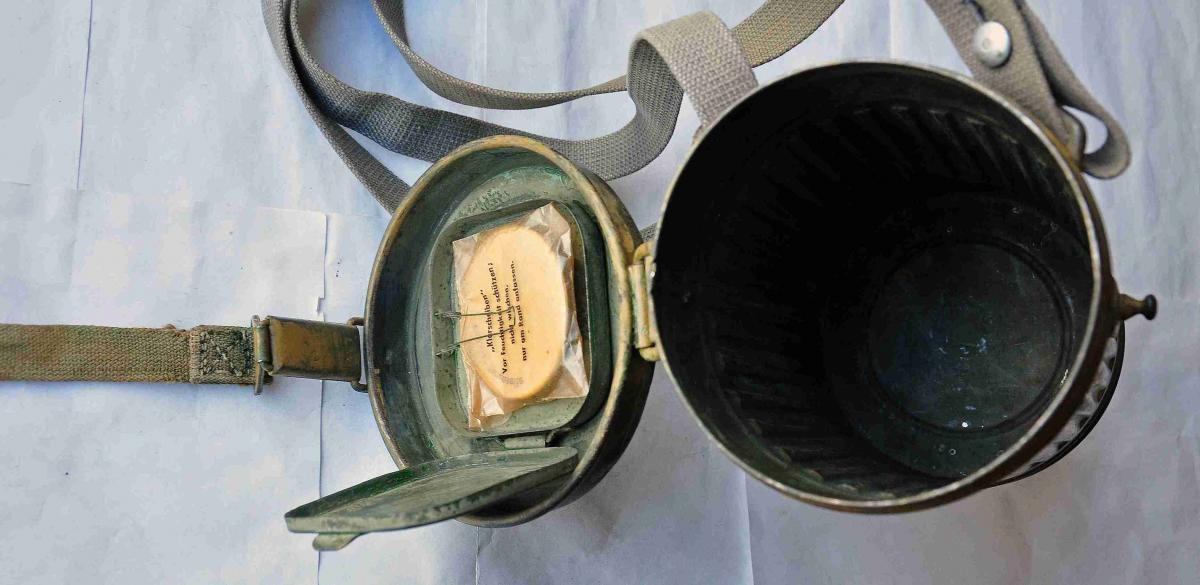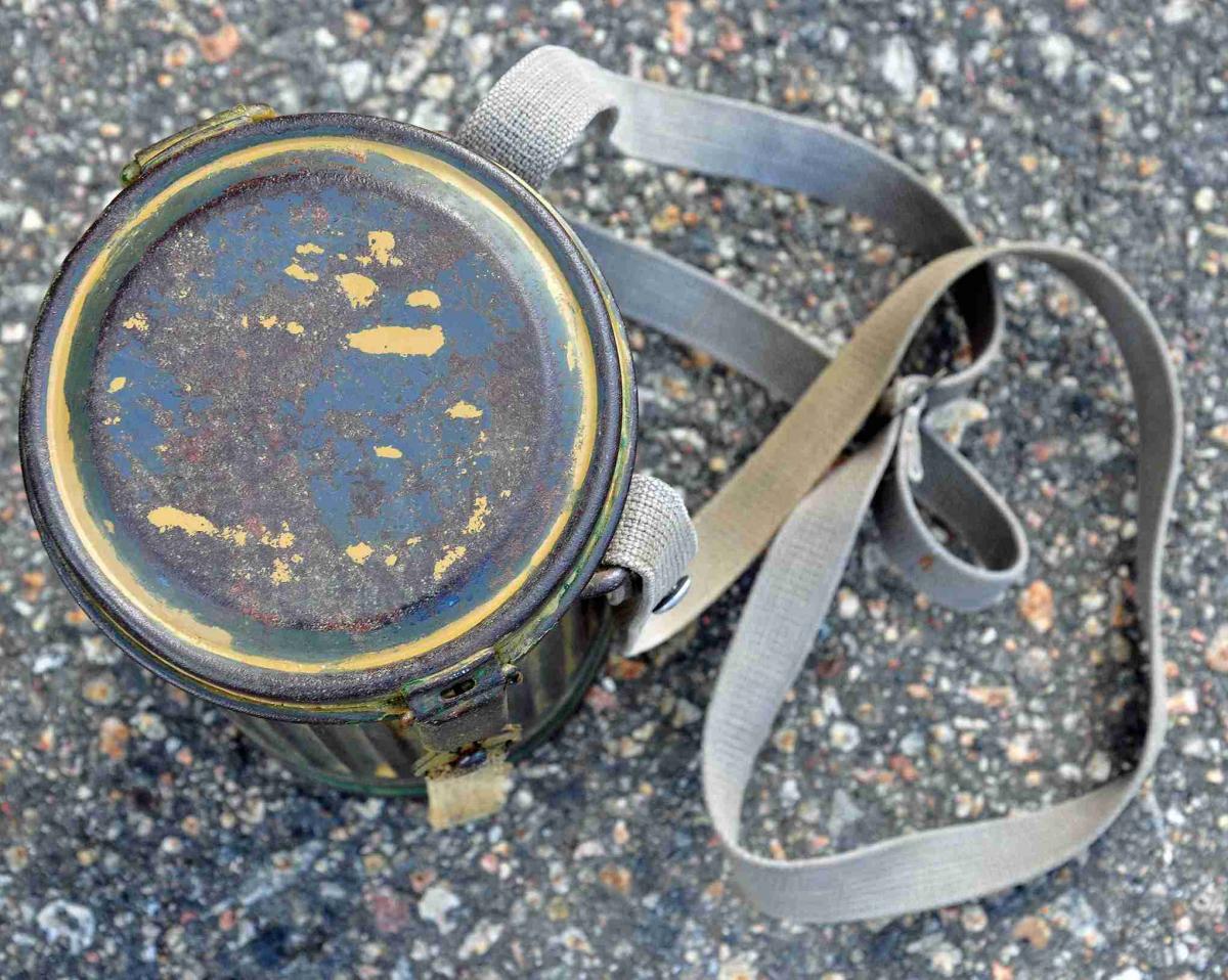 Оригинальный противогазный бак, в хорошем состоянии, высота 24.5 см.