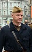 Капитан Григорий Павлович Ламсдорф на параде роты 1-й Гвардейской бригады РОА. 22 июня 1943 года, город Псков