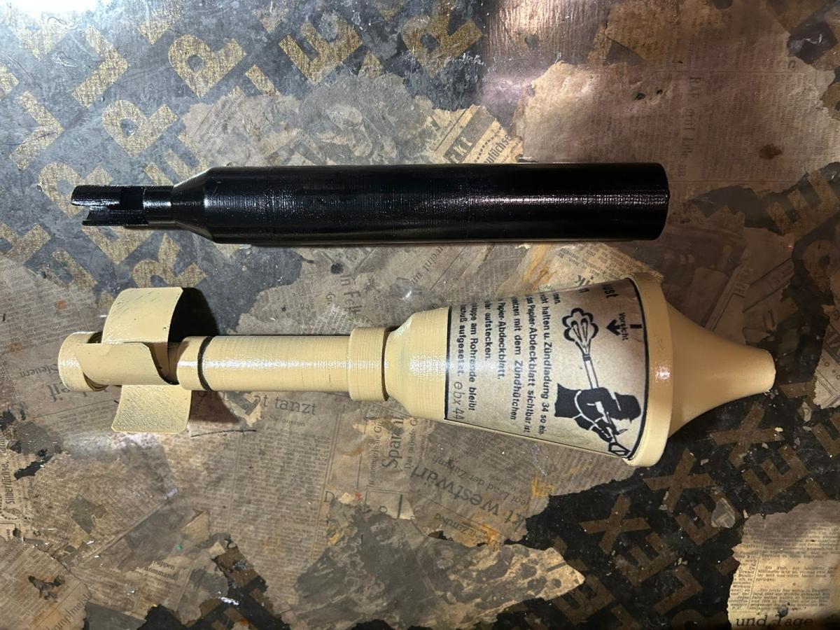 Пластиковая музейная копия мортирки для стрельбы Panzerfaust 30 Klein из Мосина с гранатой. Выполнена по архивным документам. Цена 5000 руб. Есть вариант сделать конструктор для самостоятельной сборки и покраски за 3600 руб. Либо предметы по раздельности. ВЫПОЛНЮ ЛЮБЫЕ КОПИИ.