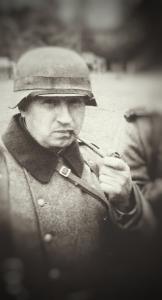 Интересно другое - военнослужащий в фуражке и с портупейным ремнем, но без петлиц и знаков различия.