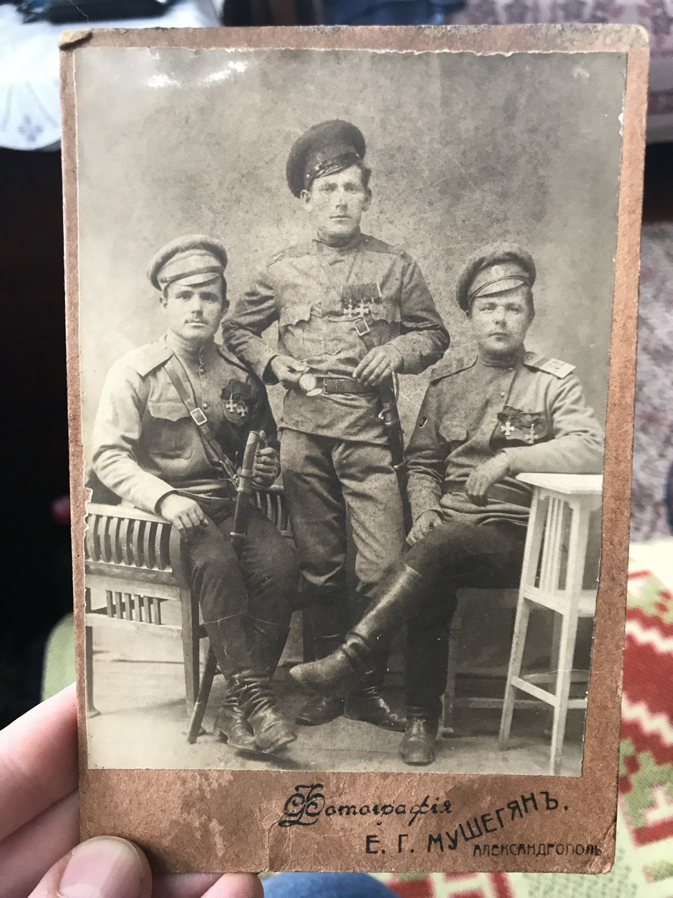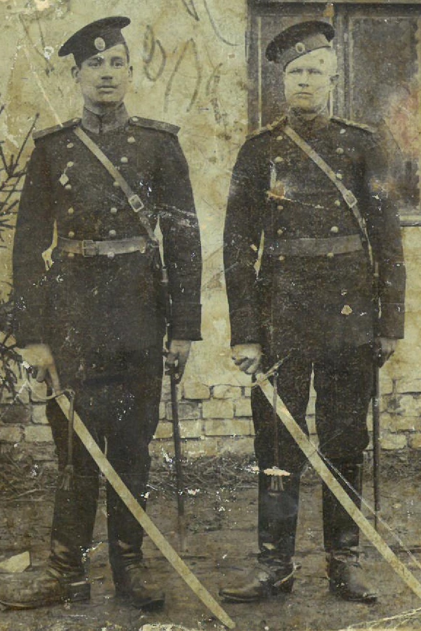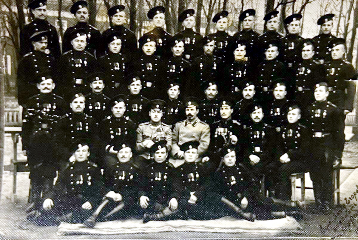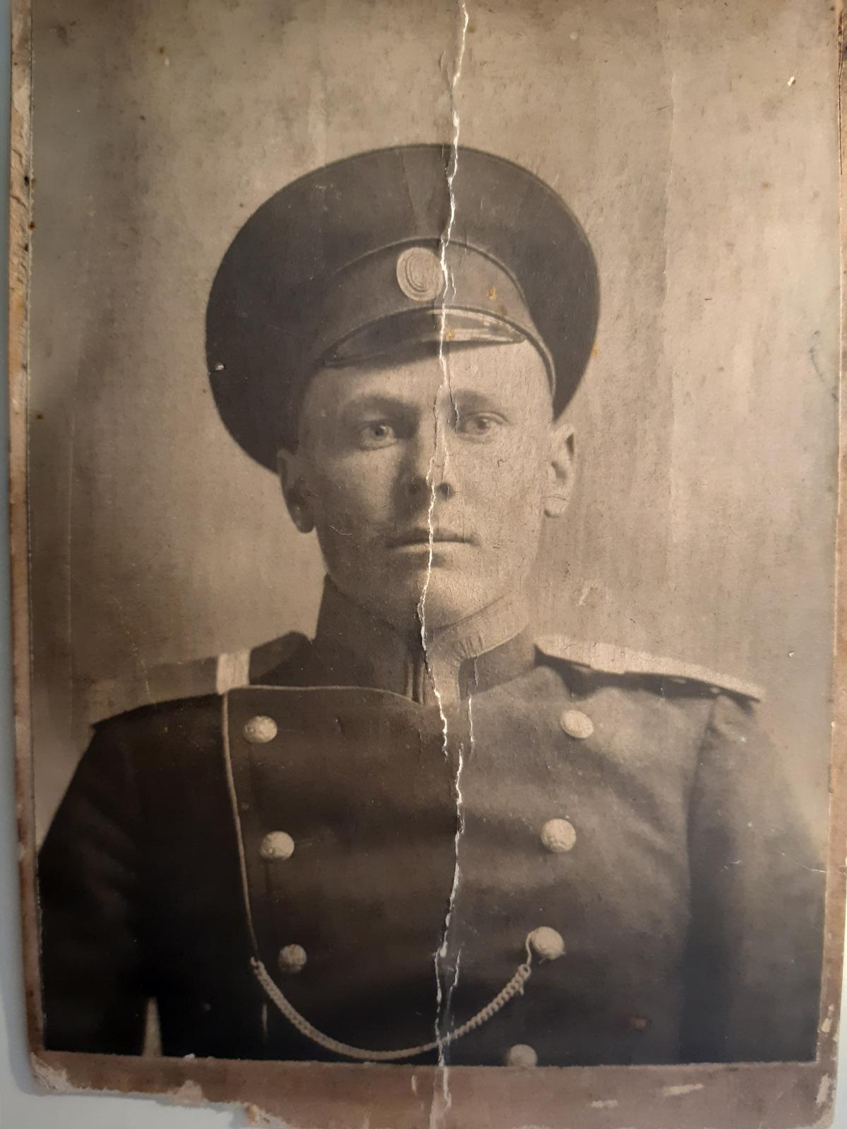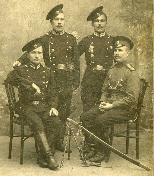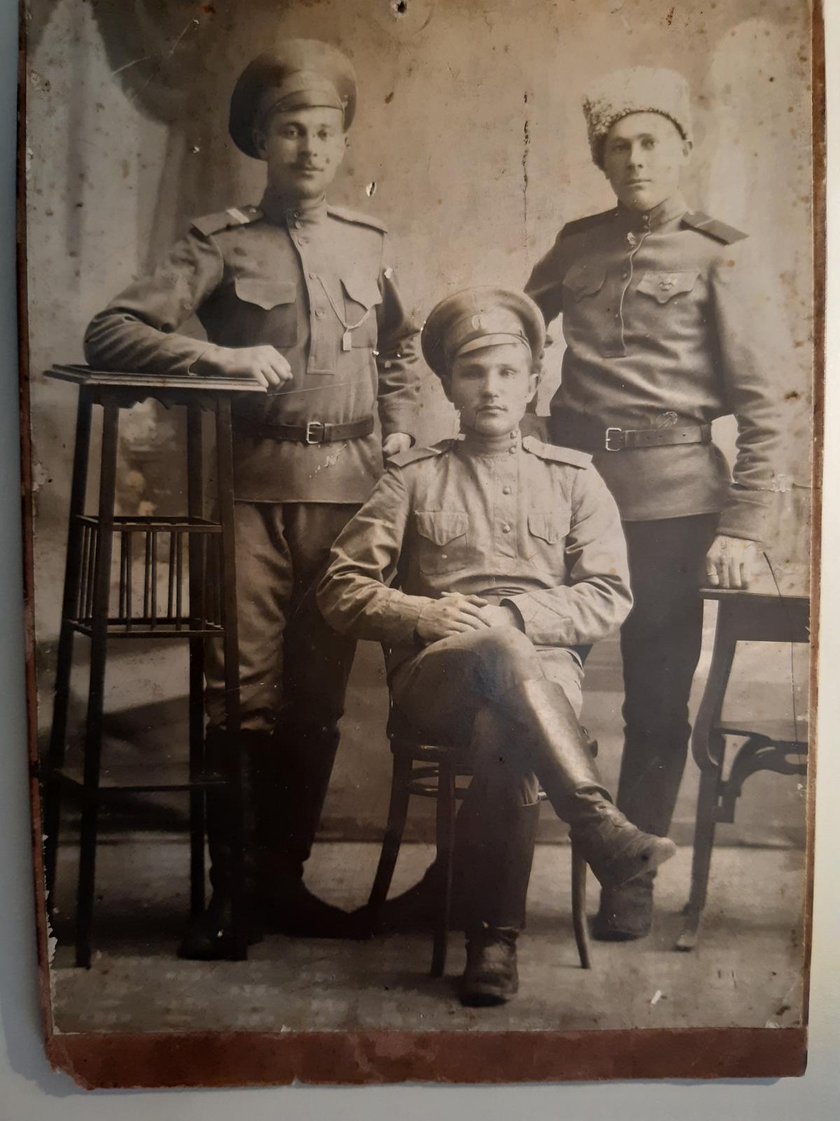 Добрый день, помогите пожалуйста определить название полка по фотографии. На ней запечатлены мой прадед, который служил до революции 1917 в Петербурге (Петрограде). Название полка нужно, чтобы попробовать найти в архиве хоть какие-то данные о нем.