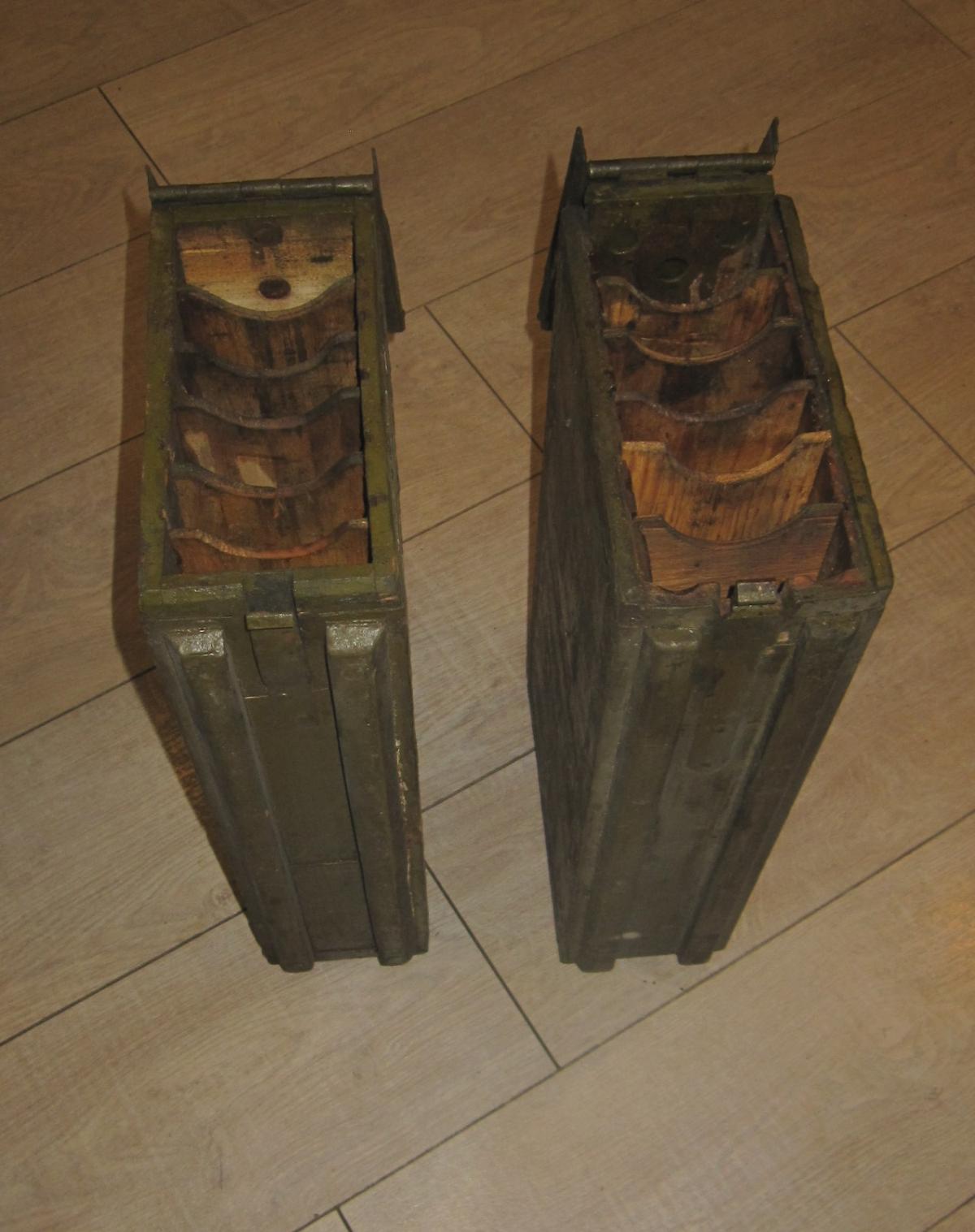 Короба (ящики) для кассет к пулемету Гочкиса. Дерево крепкое (состояние на фото). Цена 10000 рублей за штуку.